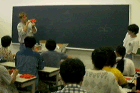 さらにプログラムは、岡村昌夫氏による「秘傳千羽鶴折形」(ひでんせんばづるおりかた:おりがたではない)に関する講演へと進んだ。今年1997年は、同書が出版されて200年の記念の年である。200年と言えば、21年に1回しか優勝しない阪神タイガースが9回も優勝してしまう長い年月だ。岡村氏は、自身200歳を越えているのではないかという詳しさで「千羽鶴折形」(おりがたではない)の魅力を語った。