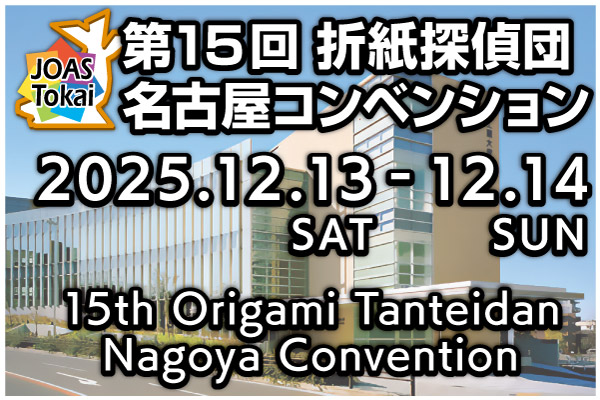 第15回折紙探偵団名古屋コンベンションと同時開催です。 発表者申し込み こちらからお申し込みください。 一次締め切り:11月15日 発表者に資格制限などはありません。 参加申し込み 11月末から申し込みを開始します。 参加費 会場 愛知工業大学自由ヶ丘キャンパス 日程・概要 主催 主催:日本折紙学会 協力:愛知工業大学 宮本好信 プログラム 11月20日ごろに公開します。 過去の会など こちらをご […]