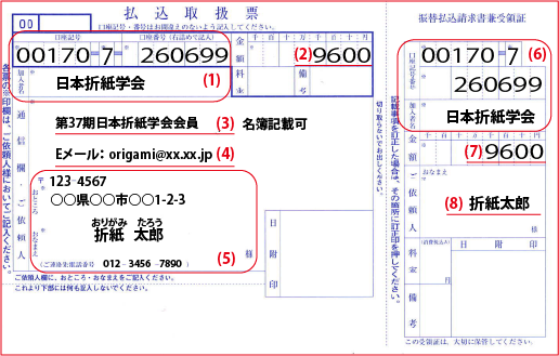 | 日本折紙学会会費(36期)の場合 | 9,000円 |